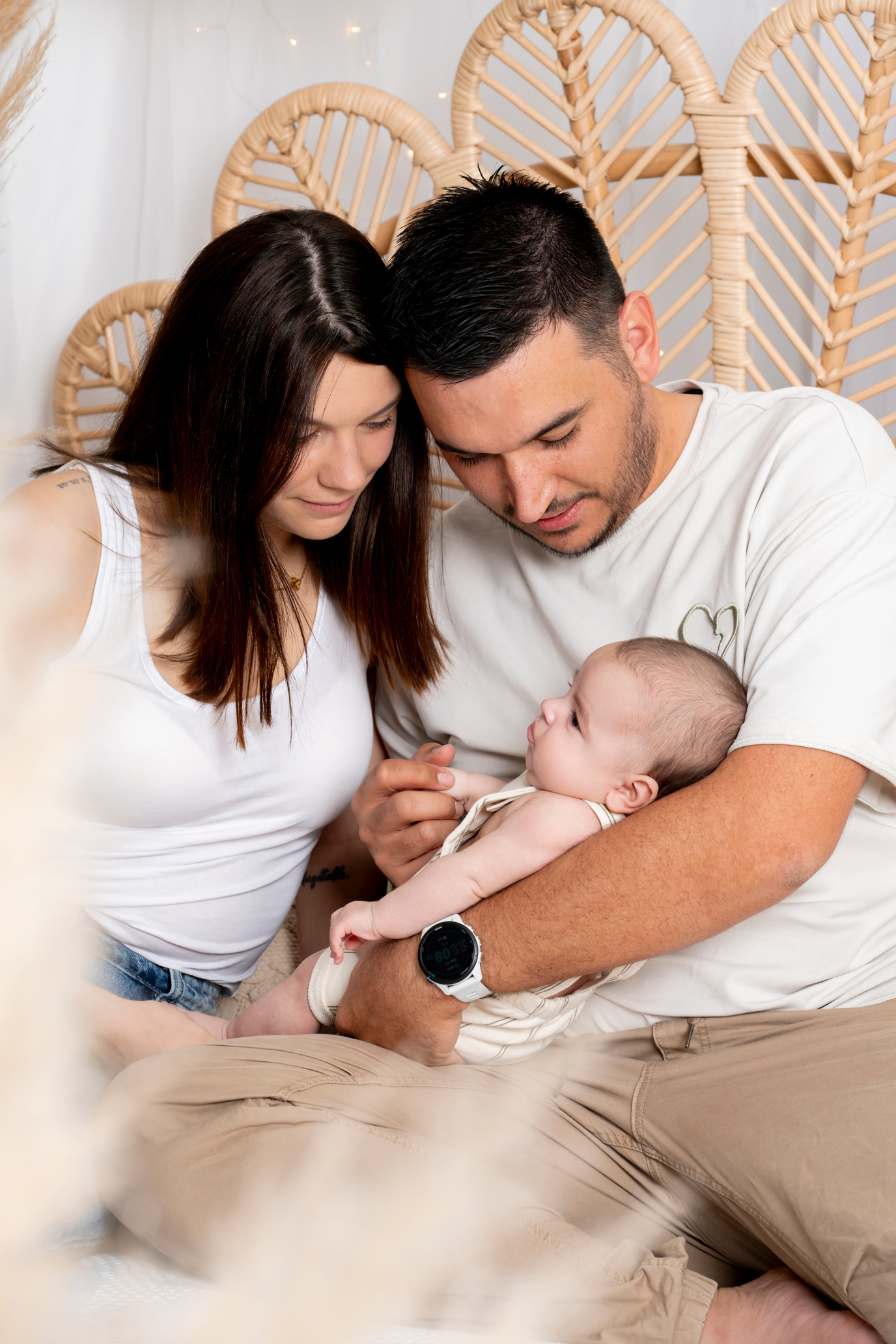 Les tenues sont des éléments importants à ne pas négliger. Alors n’hésitez pas à prévoir un sac avec différentes tenues que ce soit pour vous et pour le bébé. Mieux vaut en amener trop et qu’on choisisse ensemble si vous avez des doutes. Je chauffe le studio vu que le bébé va être souvent nu, donc ne prévoyez pas des vêtements trop chauds.